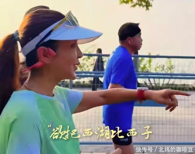 杭州不是正在举办马拉松比赛么,果不其然,里面又能看到朱迅的身影。 她身穿绿色运动服,在充满桂花味的道路上肆意的奔跑着。